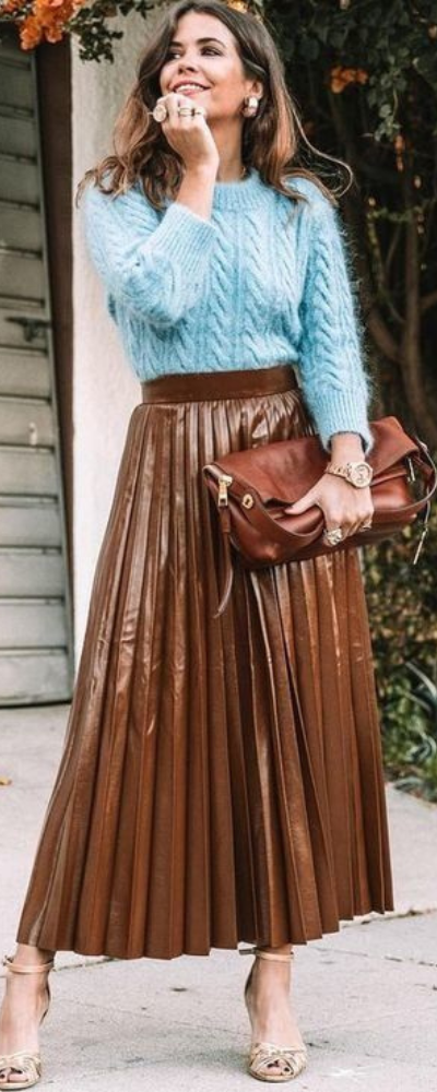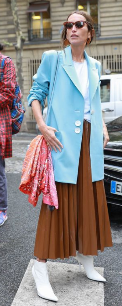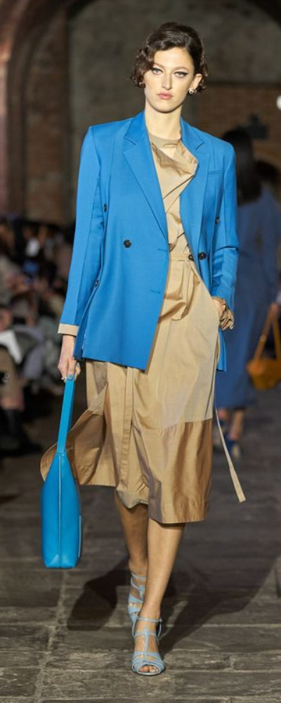 Combinar el celeste o tonalidades claras de azul con distintas tonalidades de marrón es otra forma de combinar el marrón esta temporada