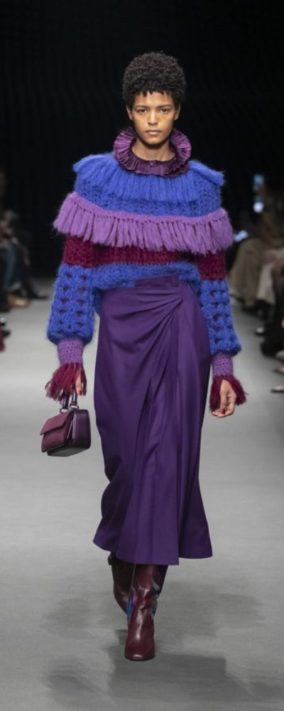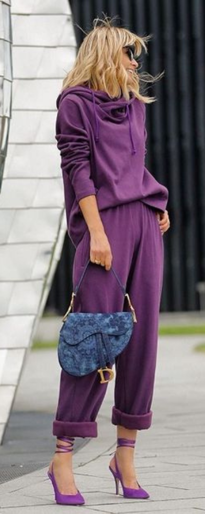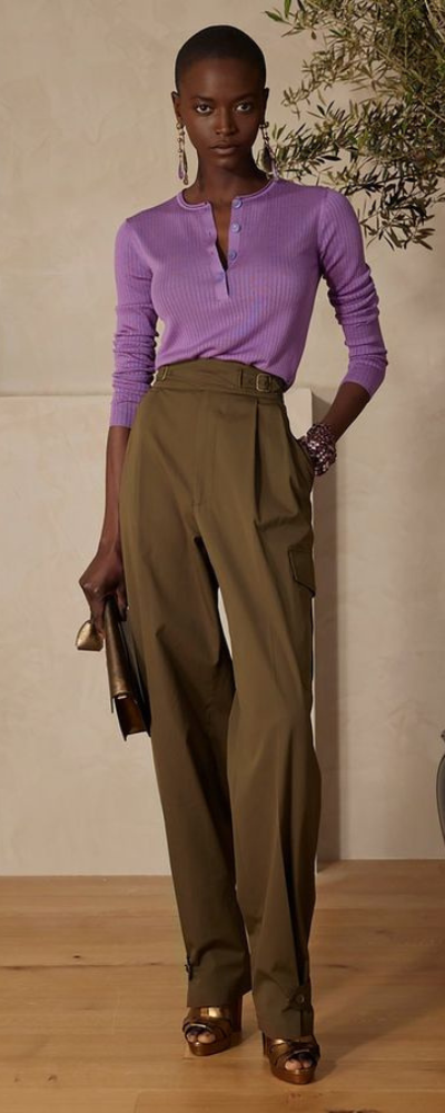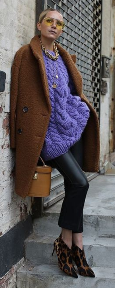 En esta combinación el marrón aporta calidez al lila, puede probar distintas tonalidades de marrón quemado, oscuro, claro con las variantes de tendencia del morado esta temporada.