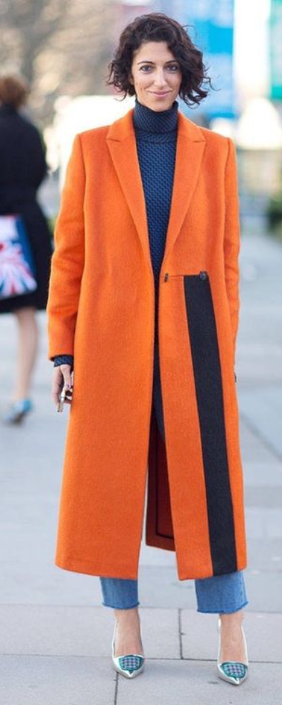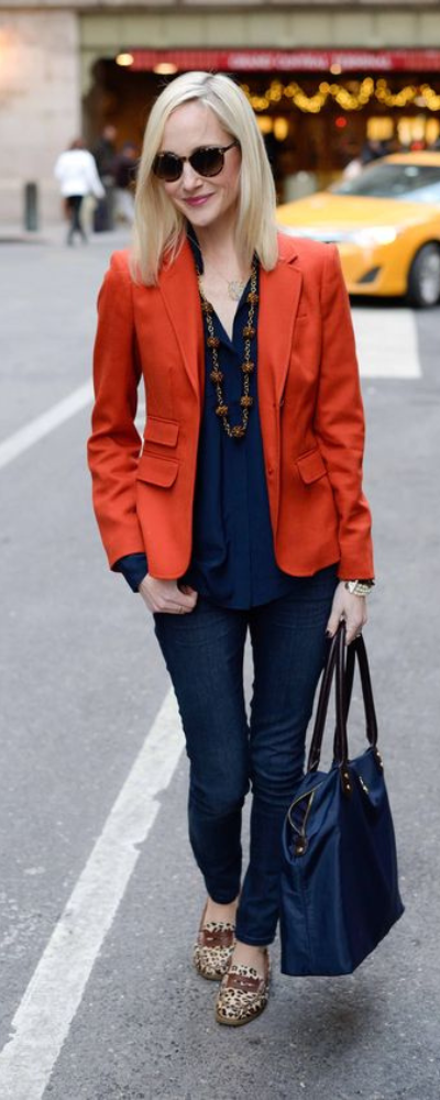Es una excelente combinación de colores complementarios para esta temporada sobre todo con las distintas tonalidades de azul de esta temporada.