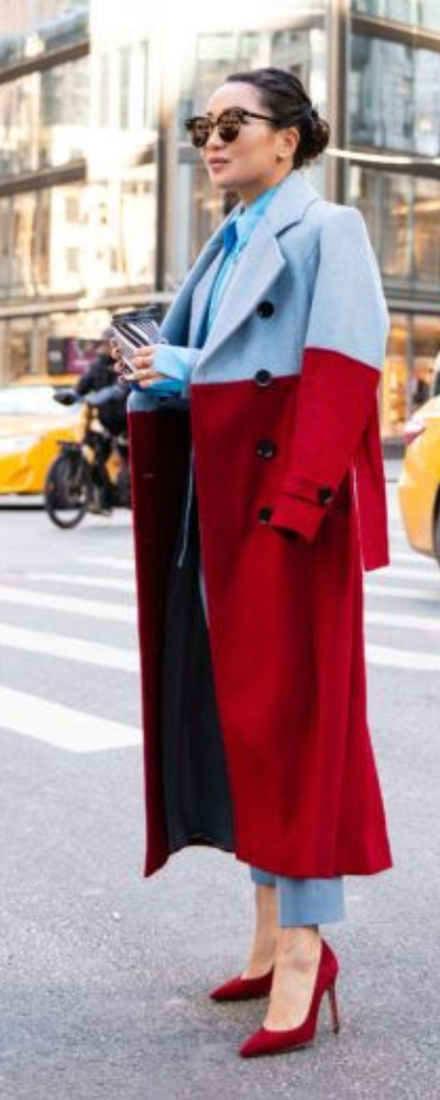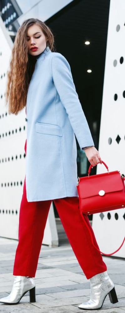 Combinar tonalidades de rojo con tonos de azul oscuro es una apuesta segura, pero también puedes probar combinar tonalidades más claras de azul para darle un look distinto a la combinación esta temporada.