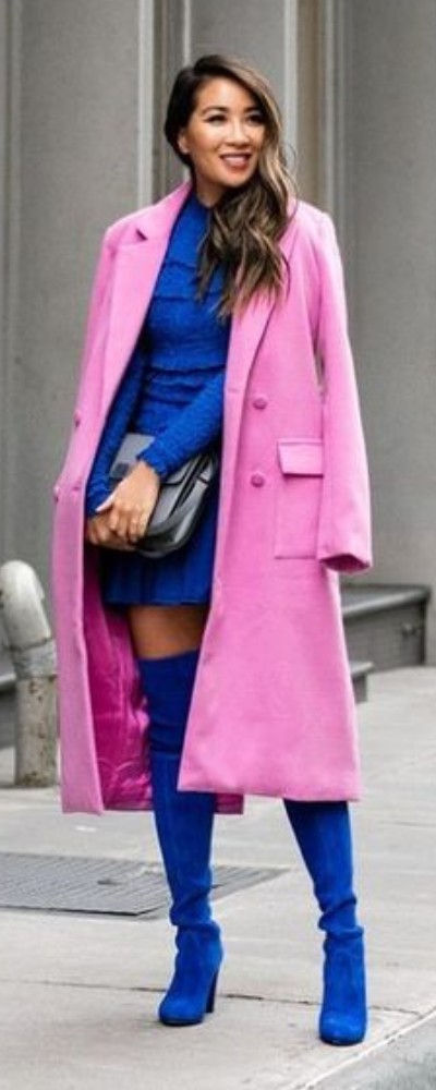 Es una de las combinaciones más dulces de esta temporada sobre todo si el tono de rosa es suave combinado con un tono de azul medio y luminoso.