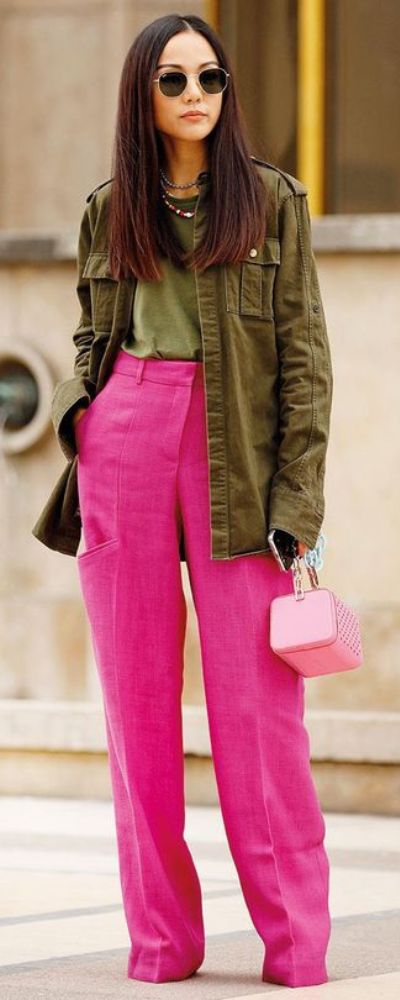 Es una de las variaciones de la combinación complementaria del rojo y verde, puedes animarte a probar esta combinación utilizando distintas tonalidades de rosa y verde.
